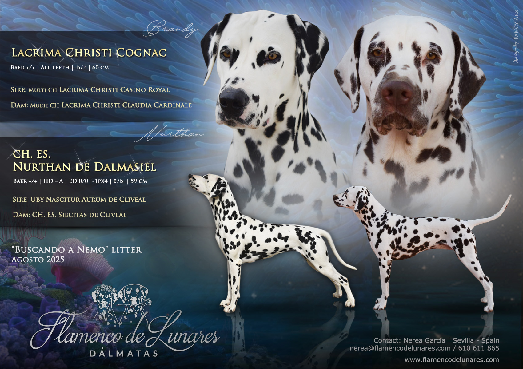 Es una alegría compartir con vosotros la que será nuestra próxima Camada: “Buscando a Nemo”. Un cruce muy especial y deseado, porqué así lo fueron los padres de estos futuros cachorritos.