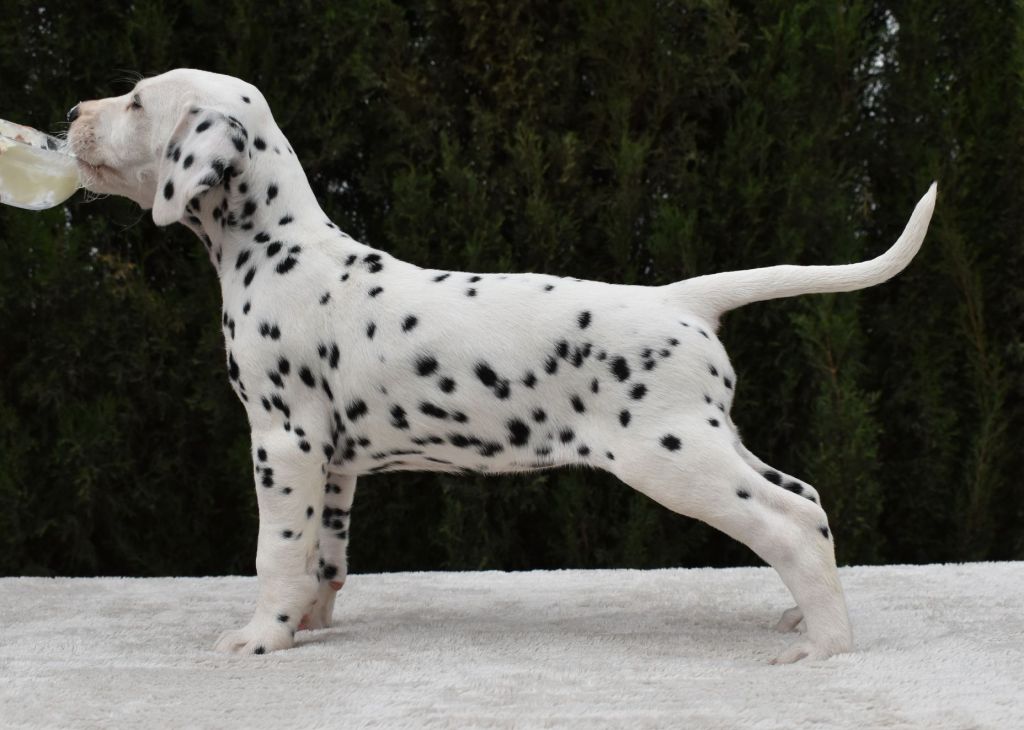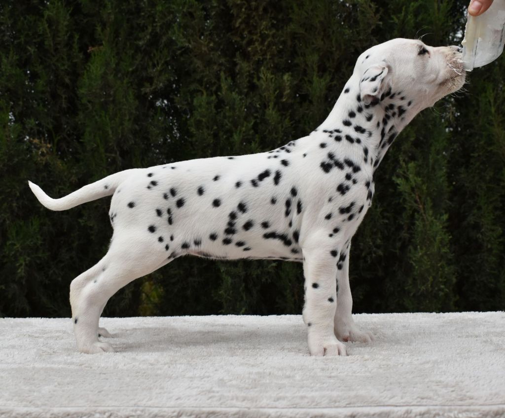 Hija de Lacrima Christi Ciciban (Kai). Un macho espectacular, importado de Croacia del criadero Lacrima Christi de Anita Radic y Zeljko Radic. Propiedad de Jordi Salud. El amor hacia este perro fue un auténtico flechazo. El impresionante físico y la buena estructura. Acompañado de una excelente mancha y espectacular movimiento. Su dulce carácter y tierno temperamento, hacen de este dálmata un buen ejemplar, que sin duda destaca entre sus iguales.