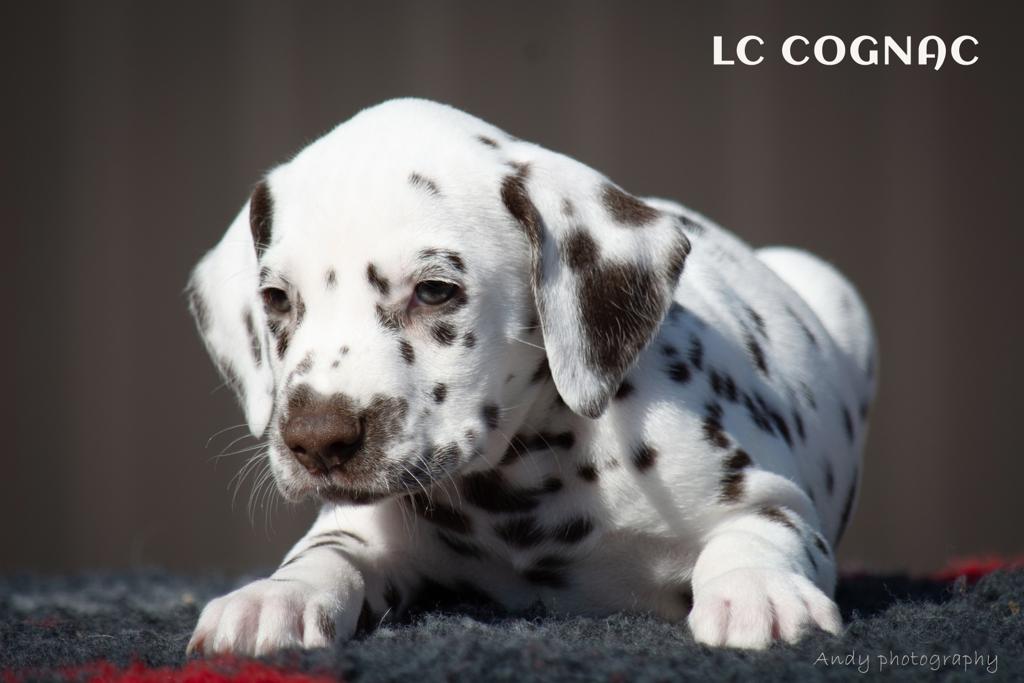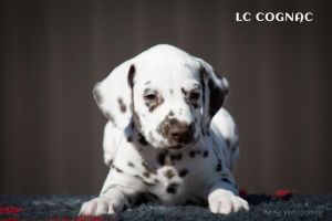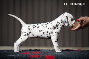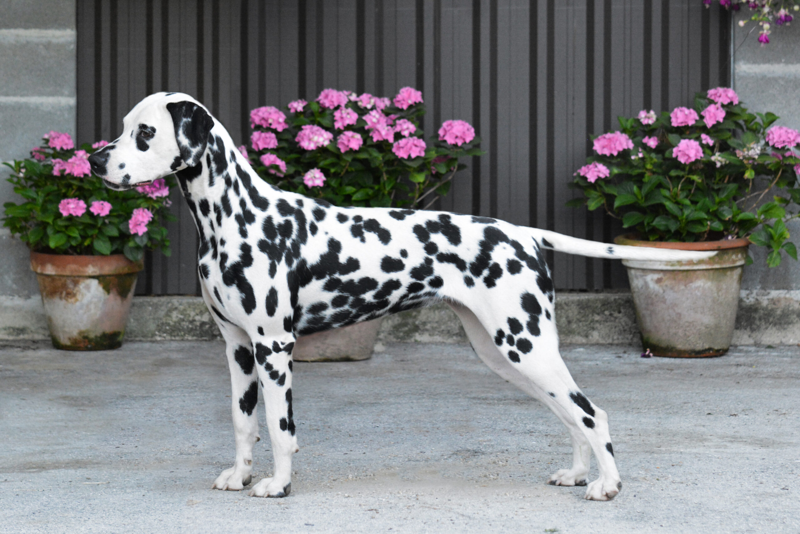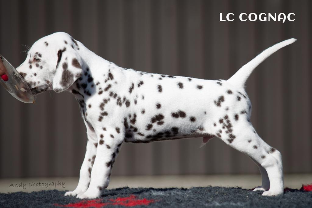 Brandy es un dálmata muy equilibrado y de buenas proporciones. Es un perro que destaca por sus excelentes angulaciones y aplomos. Así como su espalda recta. Buena cabeza, de bellas facciones y mirada dulce. Su movimiento es extraordinario: potente y de amplia zancada.
