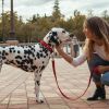Este collar es tipo martingales. Cuenta con una anilla que nos permite ajustar el tamaño, independiente del propio mecanismo antitirones del collar. Es muy cómodo también gracias a la tela que cubre el nylon y que le confiere una textura y cuerpo agradable. Además es súper resistente para que lo puedas usar a diario. Con un diseño y confección de lo más original.